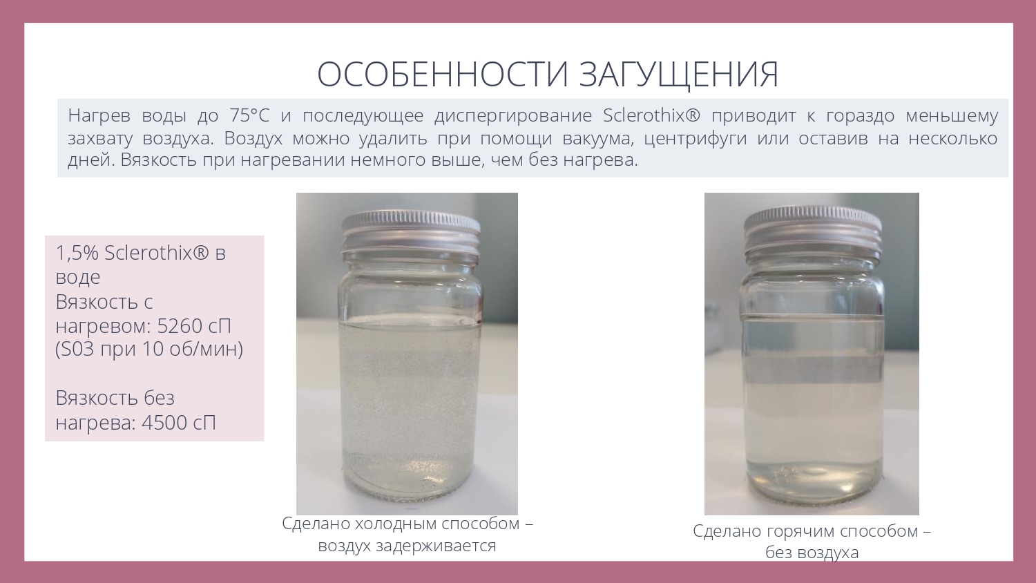 Sclerothix® является эффективной добавкой для улучшения суспендирования (подвешивания) различных частиц - скрабов, глин или пигментов, в том числе в составе моющих систем.